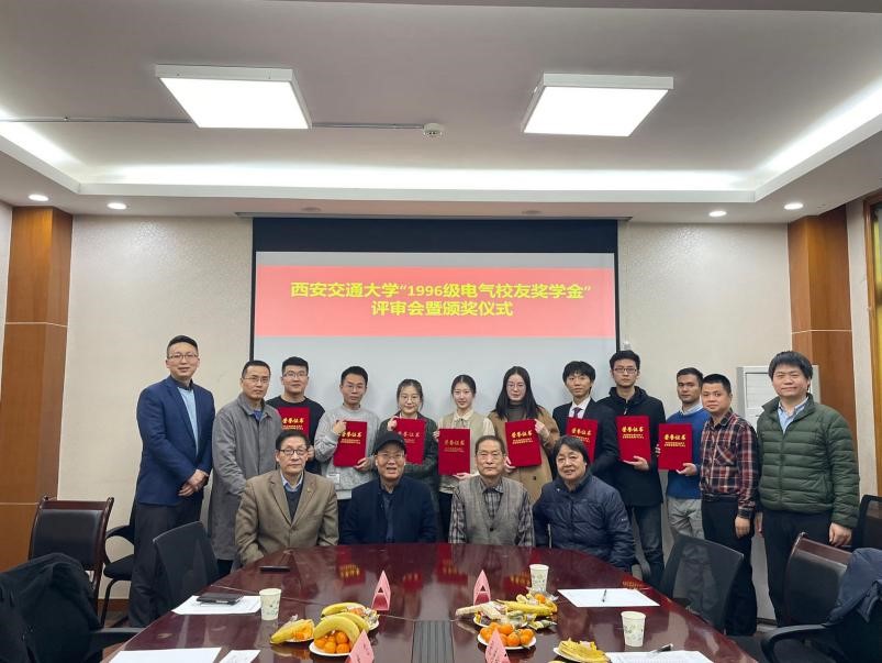 召开“1996级电气校友奖学金”评审会暨颁奖仪式,评审委员会主席阎治安教授、委员张彦斌教授、刘崇新教授、王仲奕教授、96级电气校友李飞(西安石油大学教授)、96级电气校友施荣(国网陕西省电力公司经济技术研究院教授级高工),“1996级电气校友奖学金”管理委员会主任、美女直播
