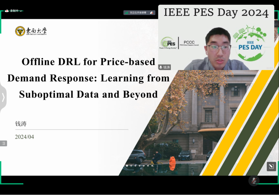 讲师钱涛博士作了题为“基于离线强化学习的需求响应定价策略研究”的主题报告,带来了需求响应定价方面的最新研究成果,介绍了基于离线深度强化学习的方法,使需求响应供应商能够从静态次优数据中学习到更好的定价策略。