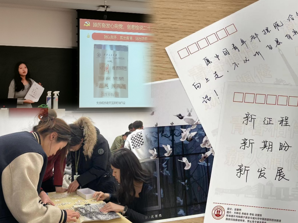 西迁老照片以拼图碎片的形式呈现在大家眼前,拾起拼图碎片,拼凑西迁历史,回忆西迁片段,重温西迁足迹,汲取西迁历史智慧,凝聚新时代奋进力量。通过一首首拼贴诗、一幅幅海报作品、一个个配音视频、一张张明信片,大家分享自己的学习感悟,或表达对于祖国繁荣昌盛的美好祝愿,或抒发个人奋发努力的坚定决心。青年强,则国家强。全体学生党员要坚定不移听党话、跟党走,怀抱梦想又脚踏实地,敢想敢为又善作善成,立志做有理想、敢担当、能吃苦、肯奋斗的新时代好青年!