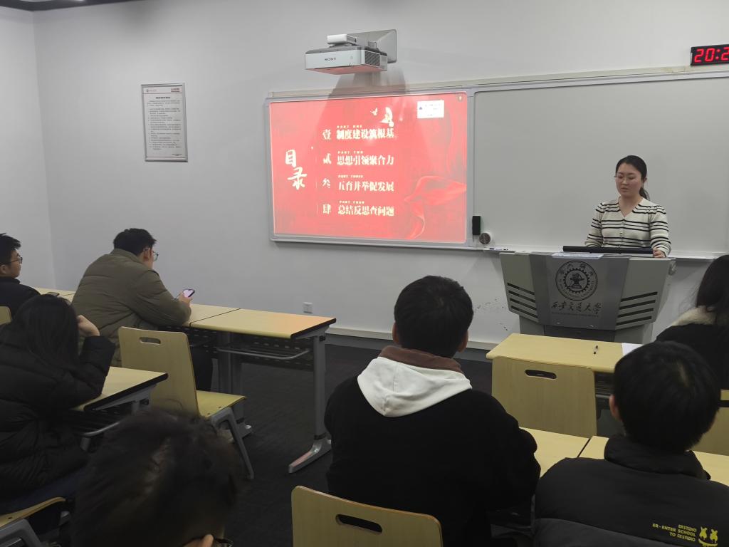 党支部书记张晓璐从“制度建设、思想引领、五育并举、总结反思”四方面,全面回顾了过去一年中党支部的工作亮点与成就。她指出,党支部致力于构建“学习型”组织,深入学习红色理论与时政方针,开展支部特色活动,通过校企合作、就业指导等活动拓宽视野。同时,她指出党支部在宣传效果与影响力方面存在不足,并提出了针对性的改进措施,通过多样化的学习活动与宣传策略,进一步激发支部发展的活力。